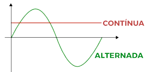 - Corrente Alternada: o movimento dos elétrons varia em ciclos, alternando entre um ciclo positivo e um negativo.