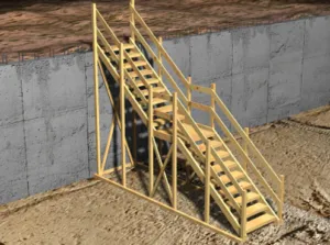 Você sabia que este item possui uma Recomendação Técnica de Procedimentos? A RTP-04, a qual tem por finalidade especificar e fornecer disposições relativas a escadas, rampas e passarelas na indústria da construção civil, porém pode ser utilizada para outras funcionalidades dos instrumentos. As escadas, rampas e passarelas, quando de madeira, recomenda-se que: