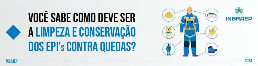 Com o trabalho nas alturas a limpeza e conservação não são diferentes. Os trabalhadores devem ter cuidados especiais quando forem utilizar, armazenar ou limpar seus equipamentos de proteção contra quedas, como: