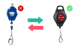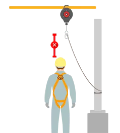 Recomenda-se que o usuário assegure que a linha de vida retrátil percorra diretamente da caixa para o ponto de retenção de queda do cinturão de segurança tipo paraquedista. A linha não deve passar embaixo dos braços ou das pernas do usuário enquanto  se movimenta ou enquanto estiver parado, pois pode acabar causando ferimentos no caso de uma queda.